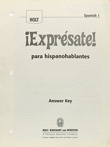Read Holt Expresate Spanish 1 Answers Epub By Click Button. Holt Expresate Spanish 1 Answers it’s easy to recommend a new book category such as Novel, journal, comic, magazin, ect. You see it and you just know that the designer is also an author and understands the challenges involved with having a good book. You can easy klick for detailing book and you can read it online, even you can download it